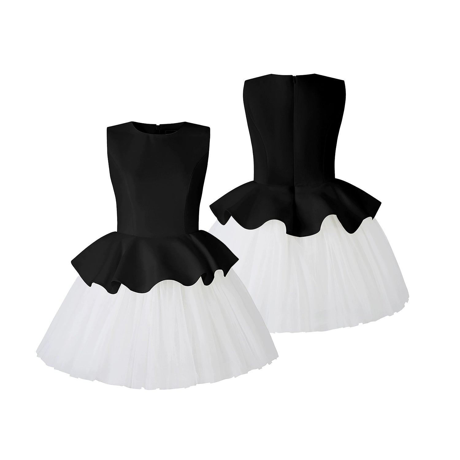 バレリーナのように広がるチュチュを贅沢に重ねた、ボリューム感たっぷりのミニ丈プリンセスドレス。