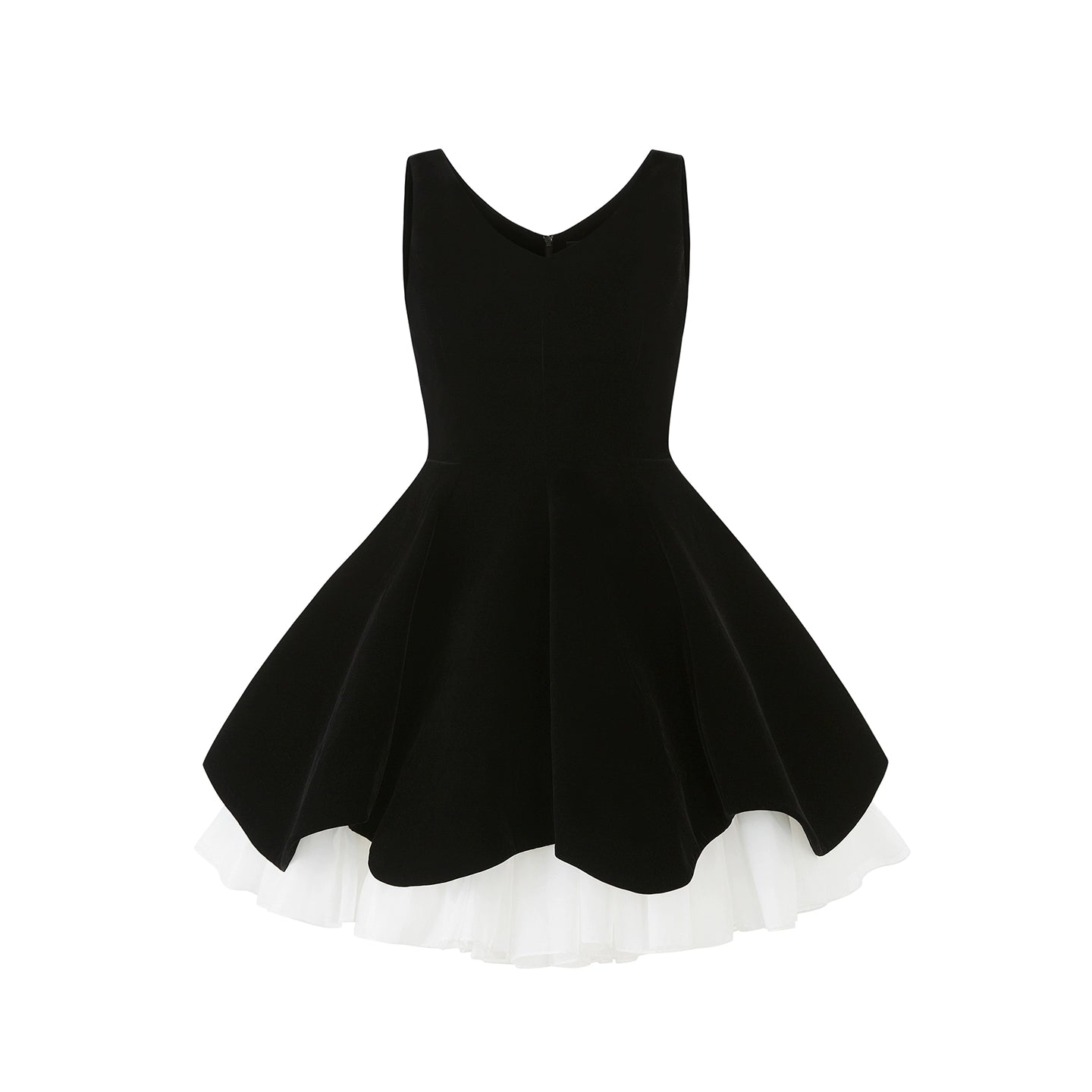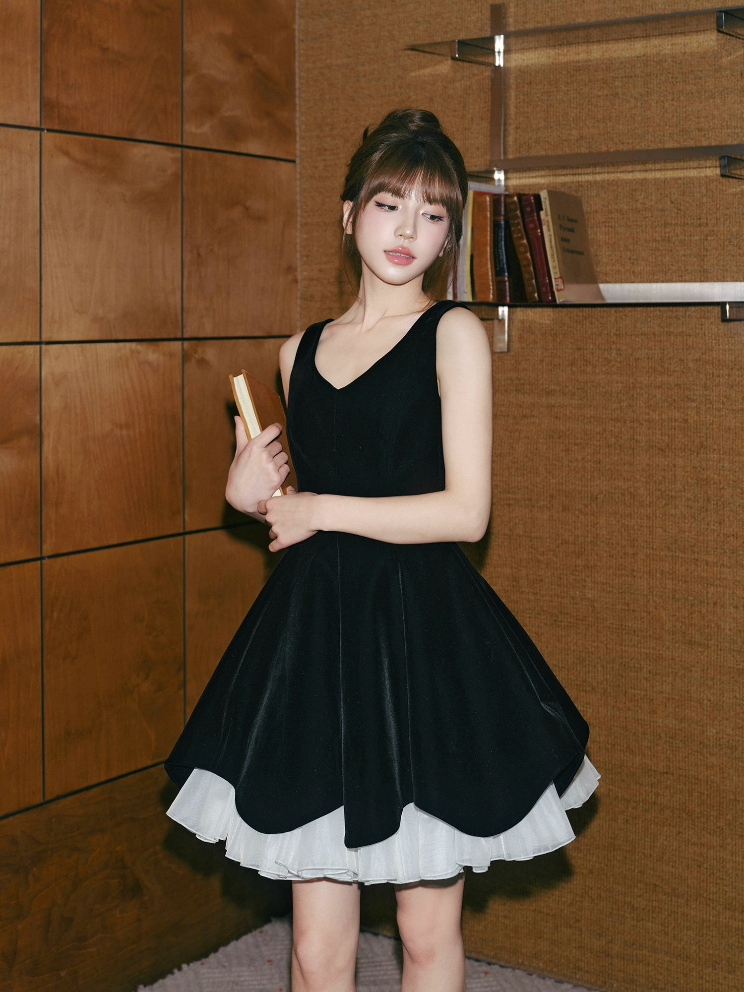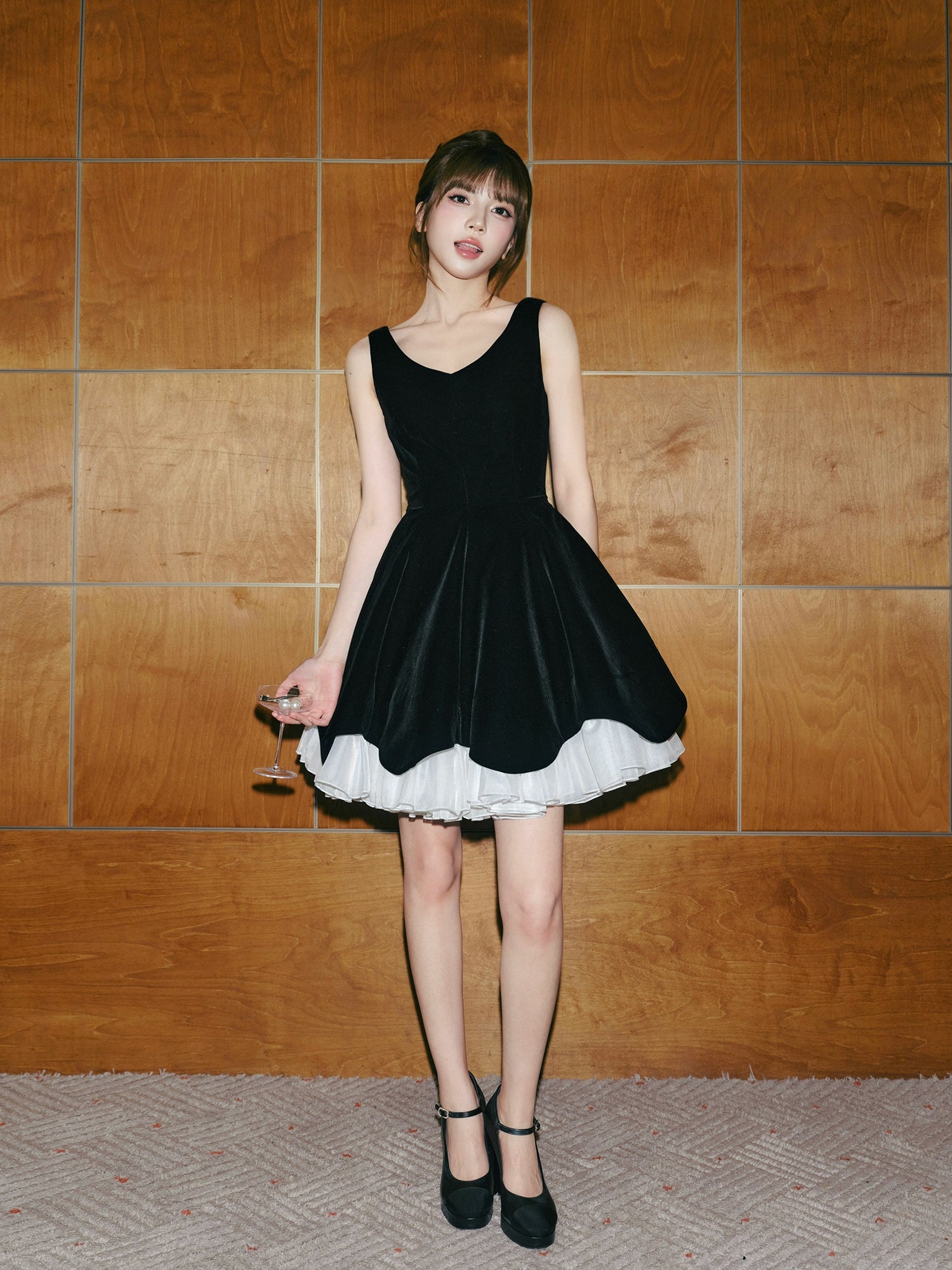 深みのあるベロア素材に、ふんわり広がるチュチュを重ねたプリンセスドレス。