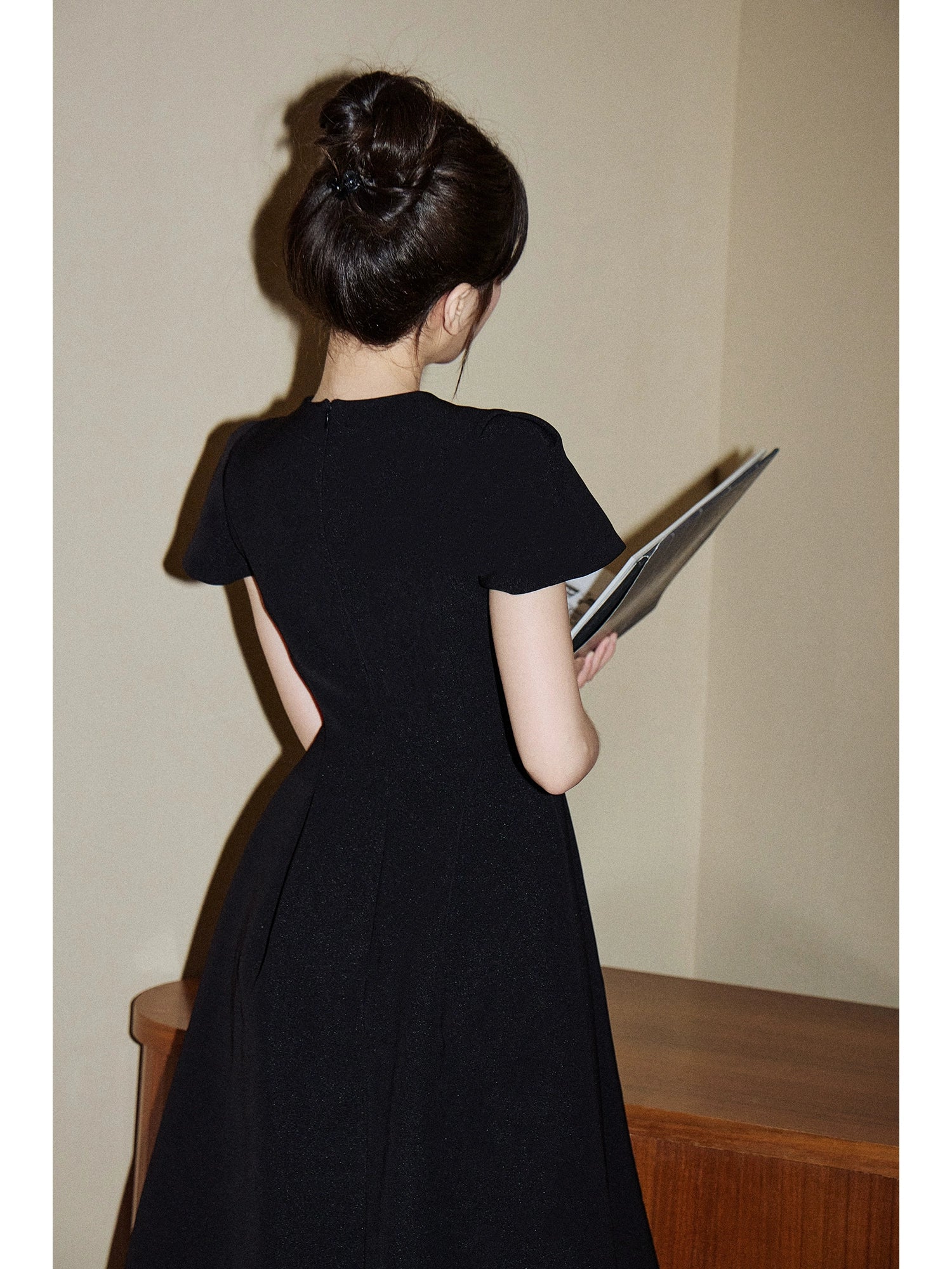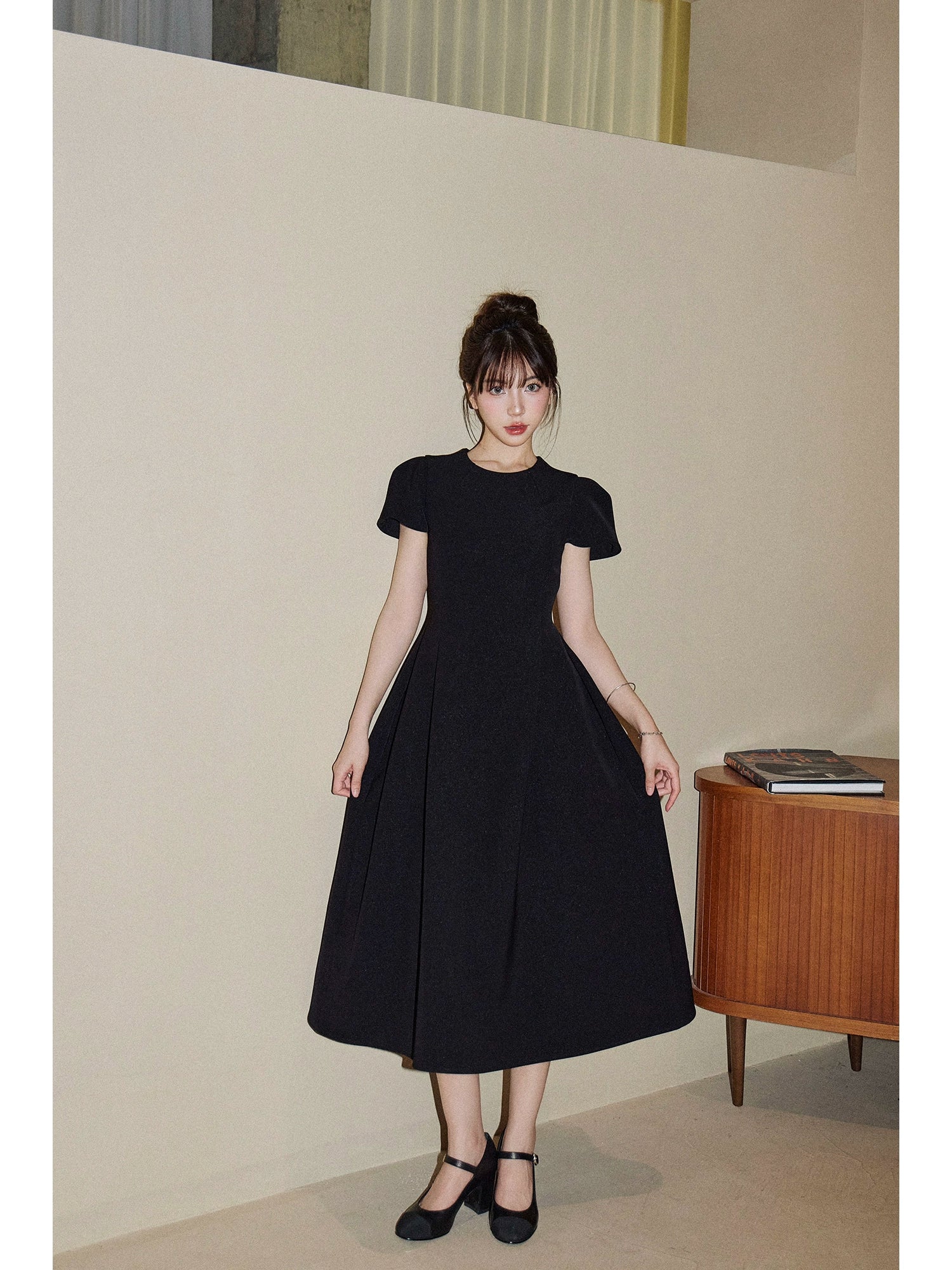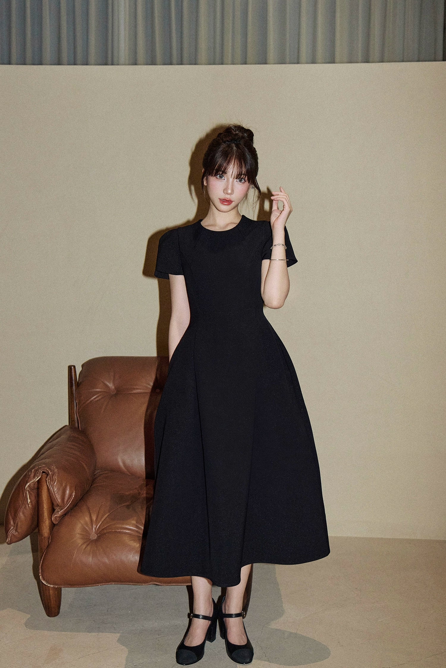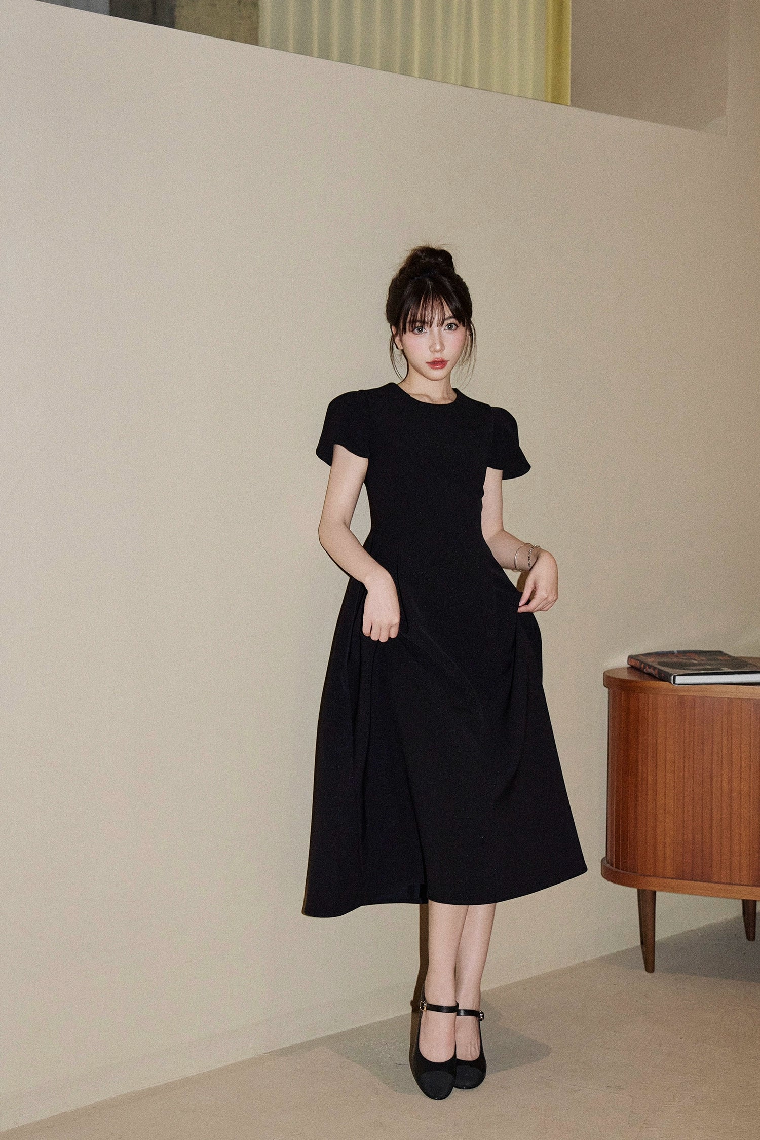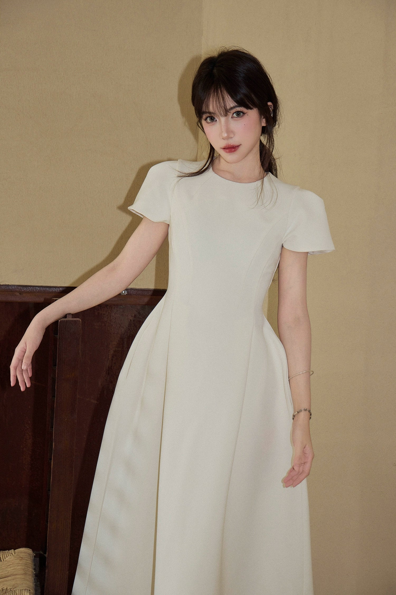 高級感ある生地と美しいシルエットで、大人の女性にもふさわしい上品な一着。