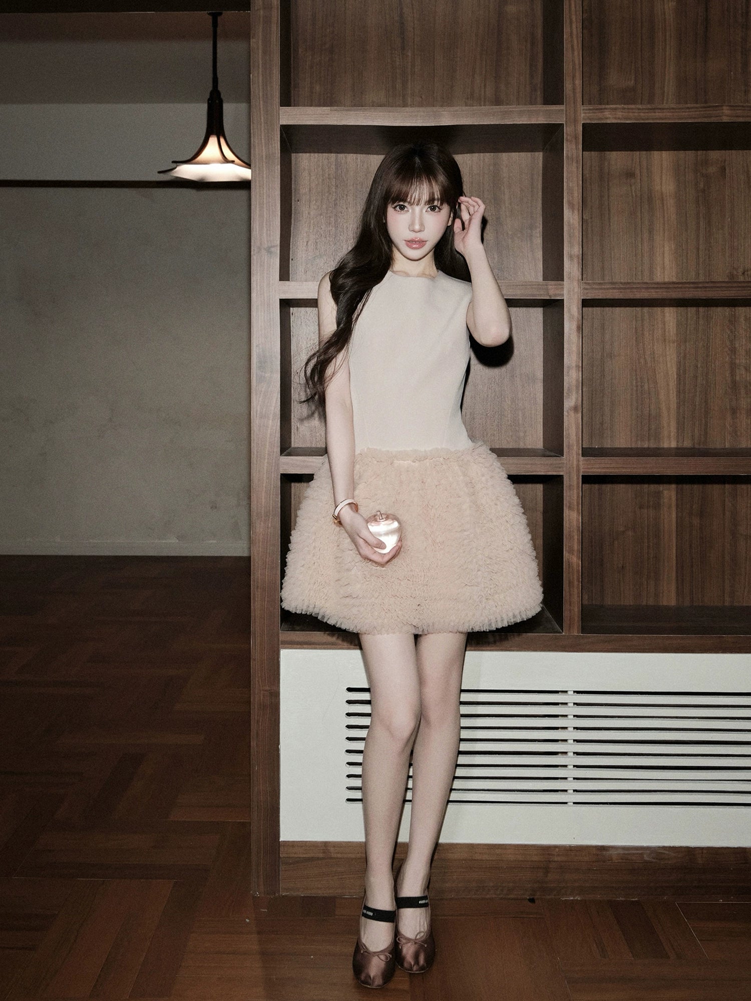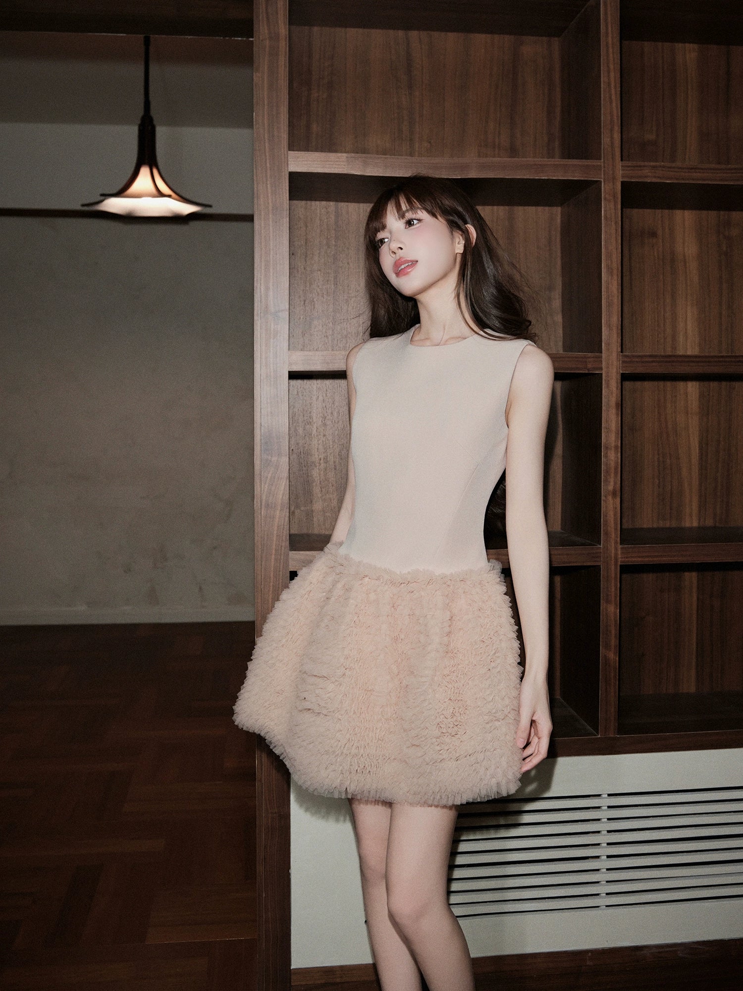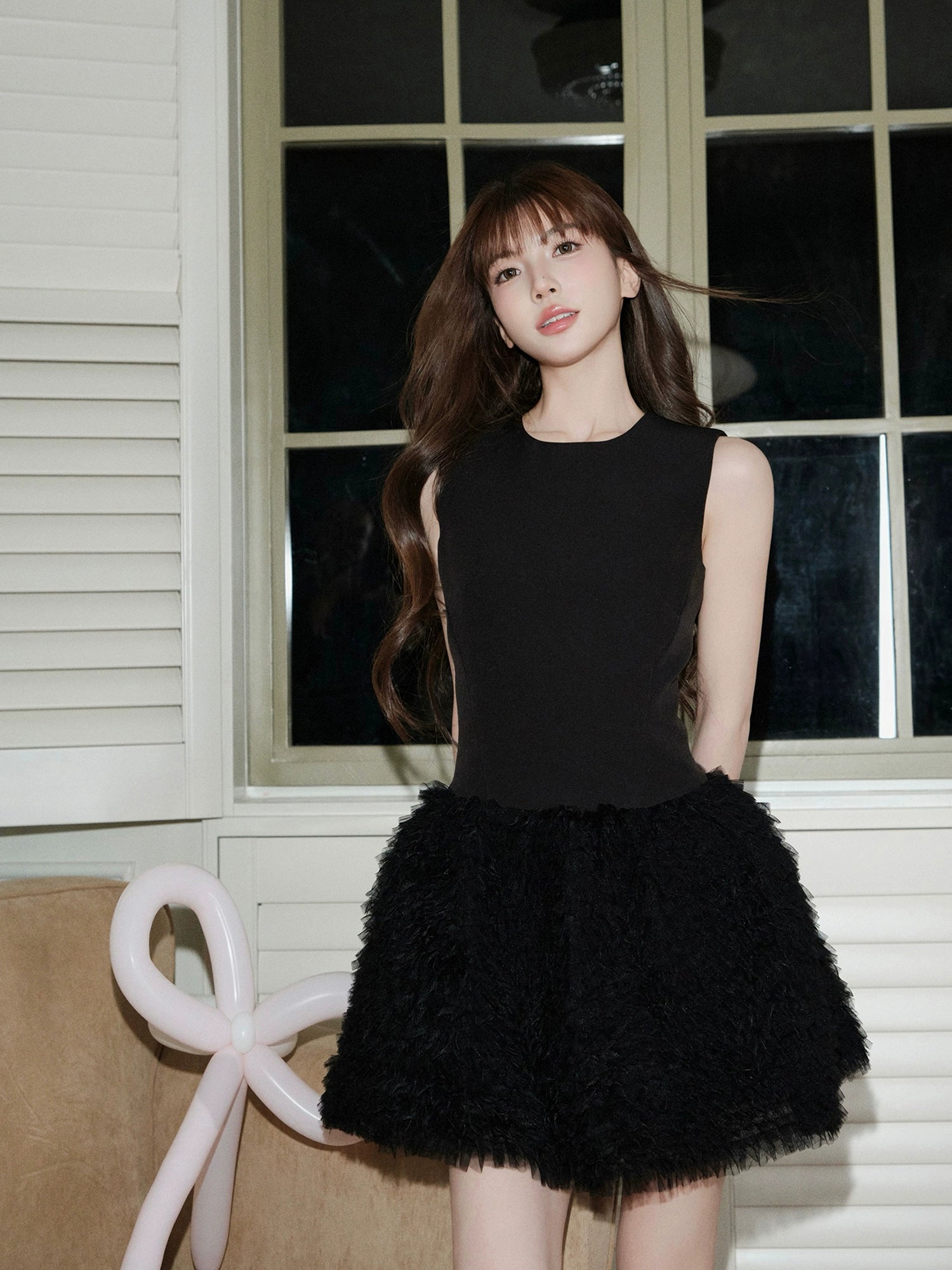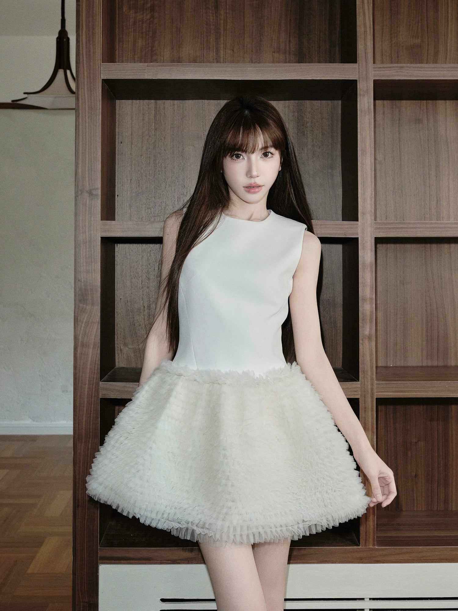 ふんわりとしたチュチュスカートが印象的なミニ丈ドレス。