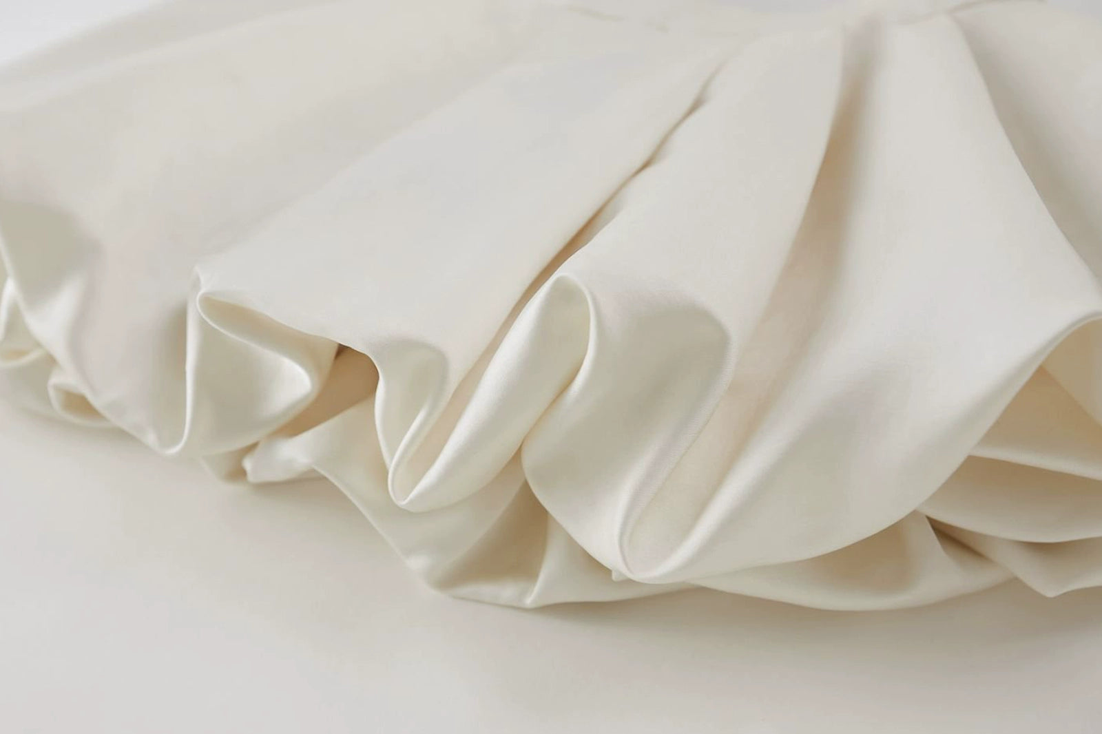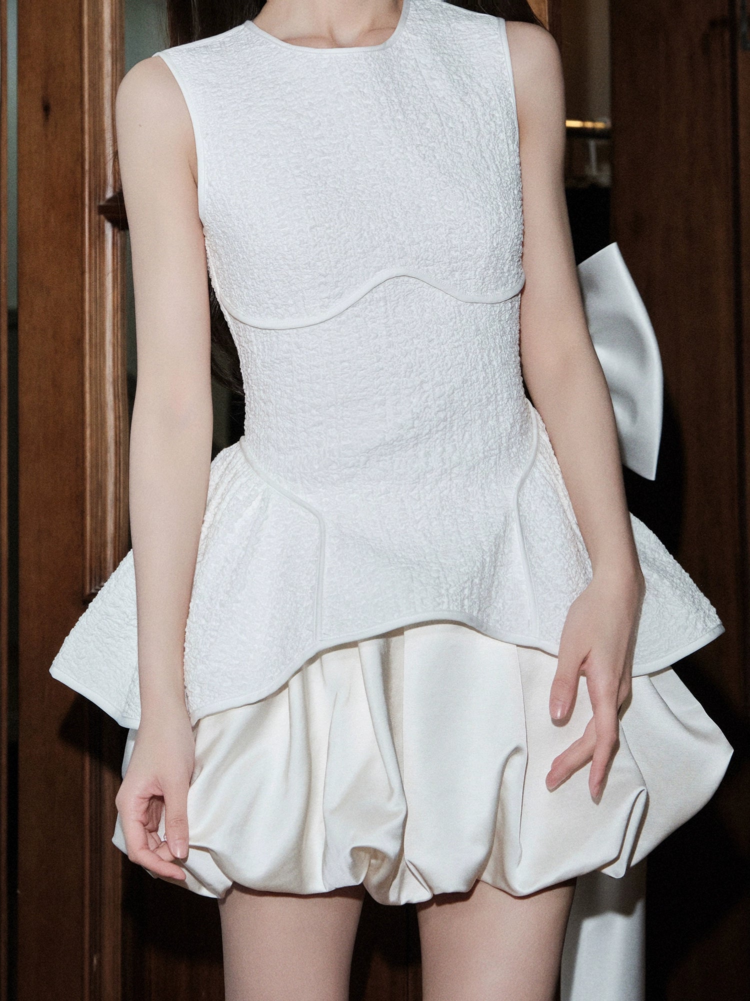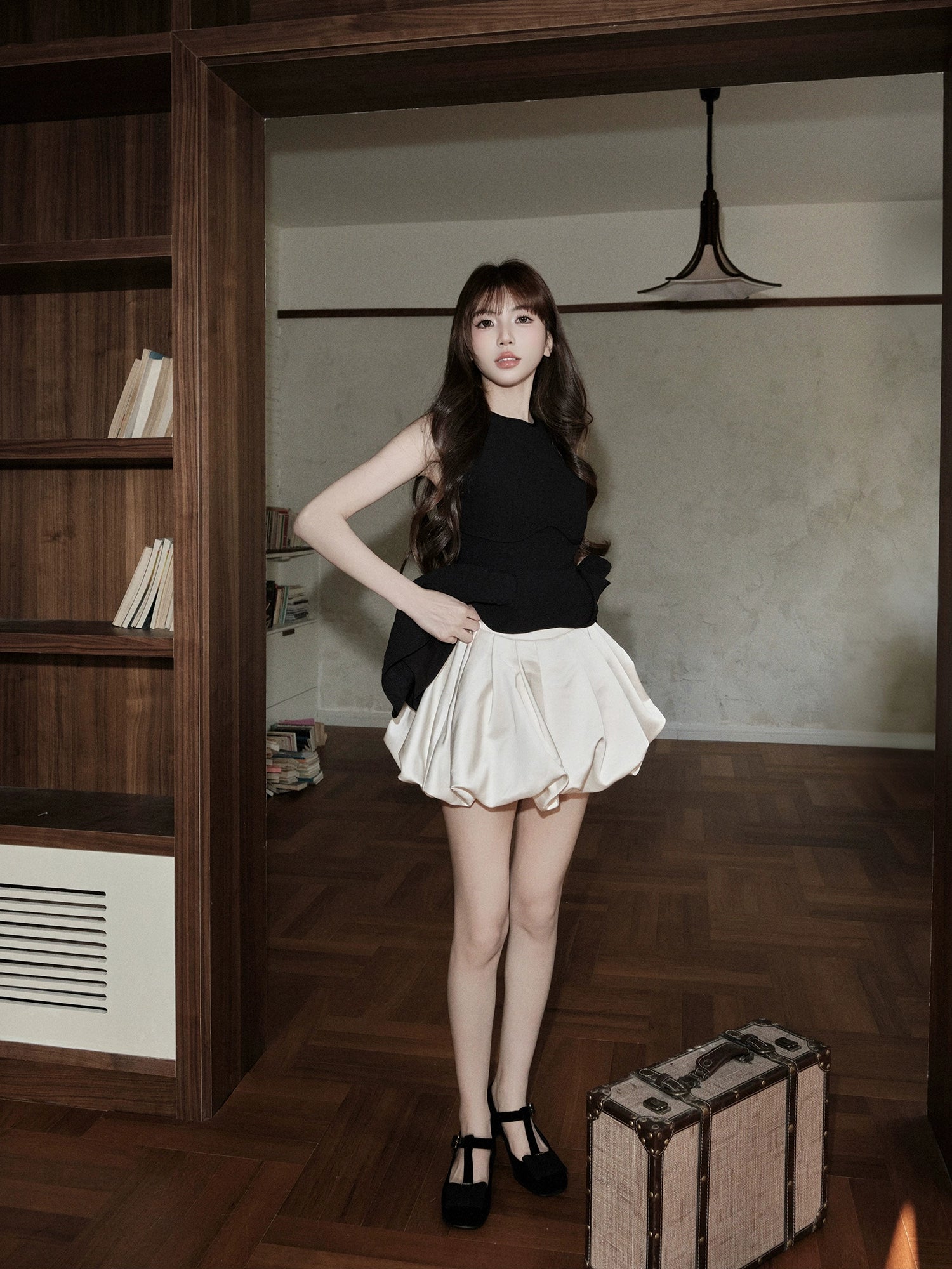 ふんわりとした丸みのあるシルエットが特徴の、ミニ丈バルーンスカート。