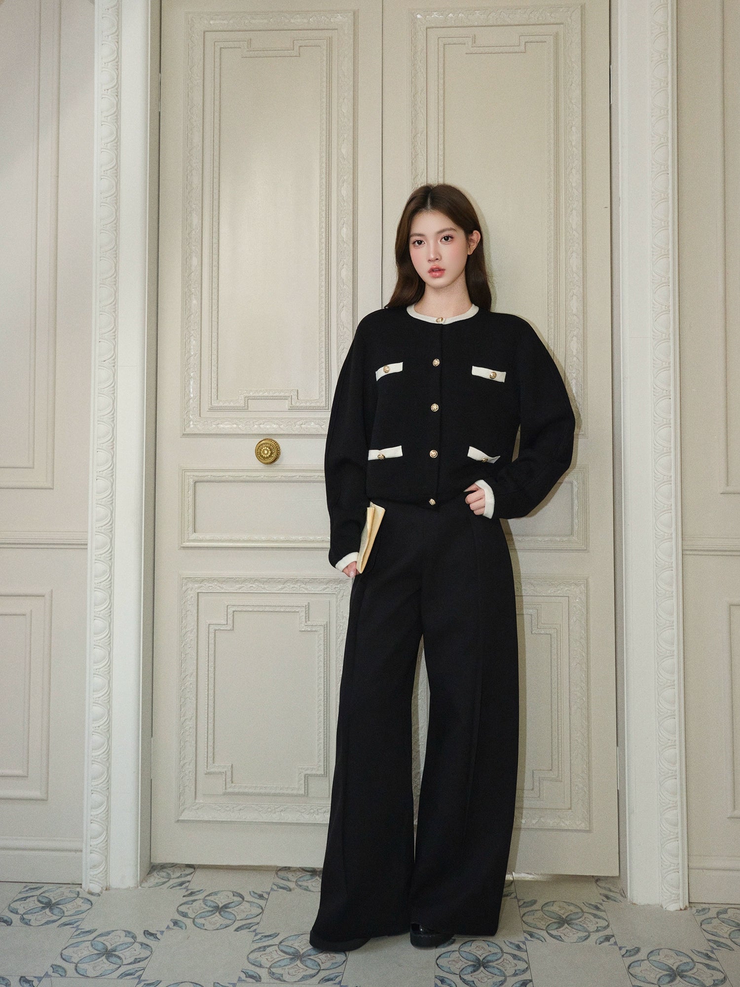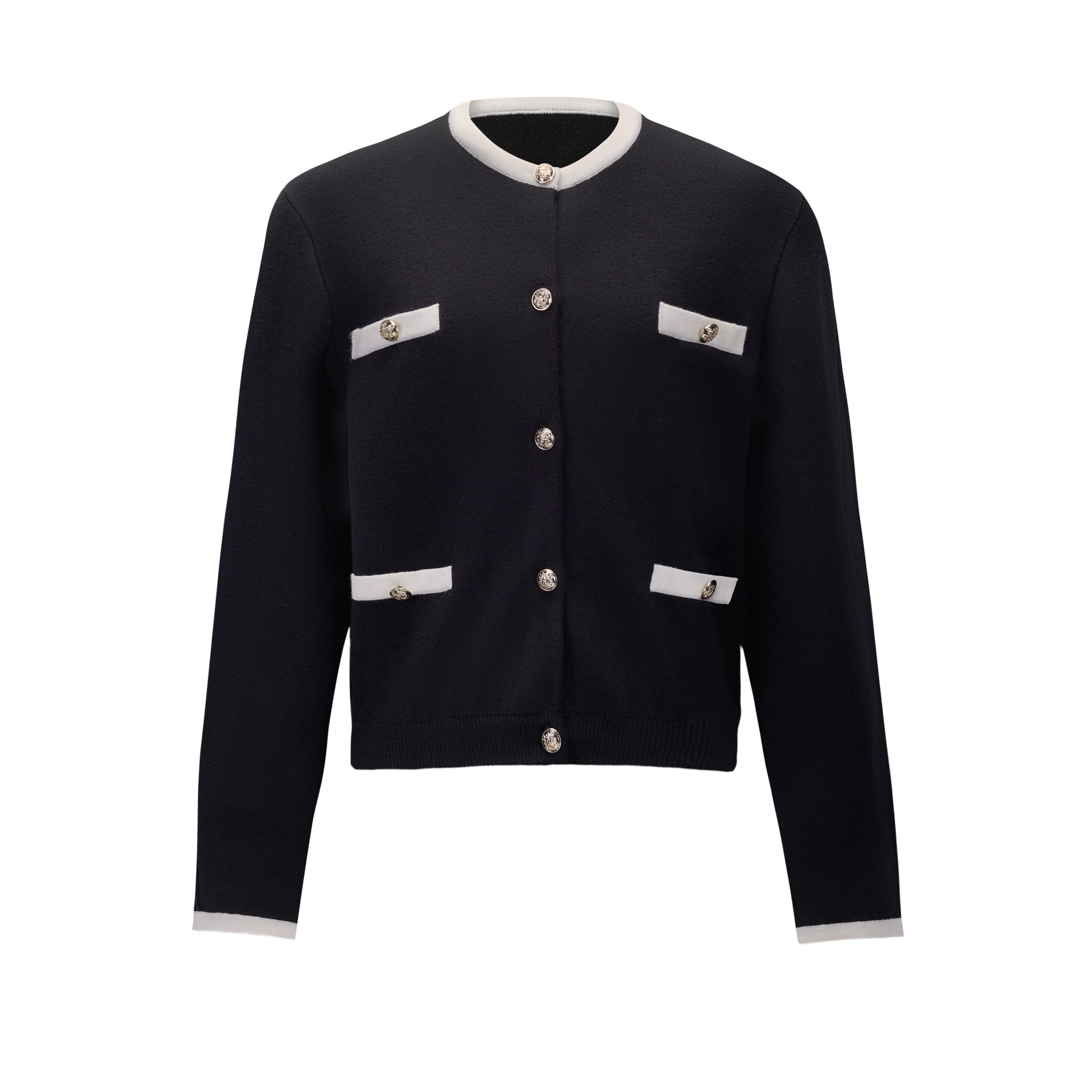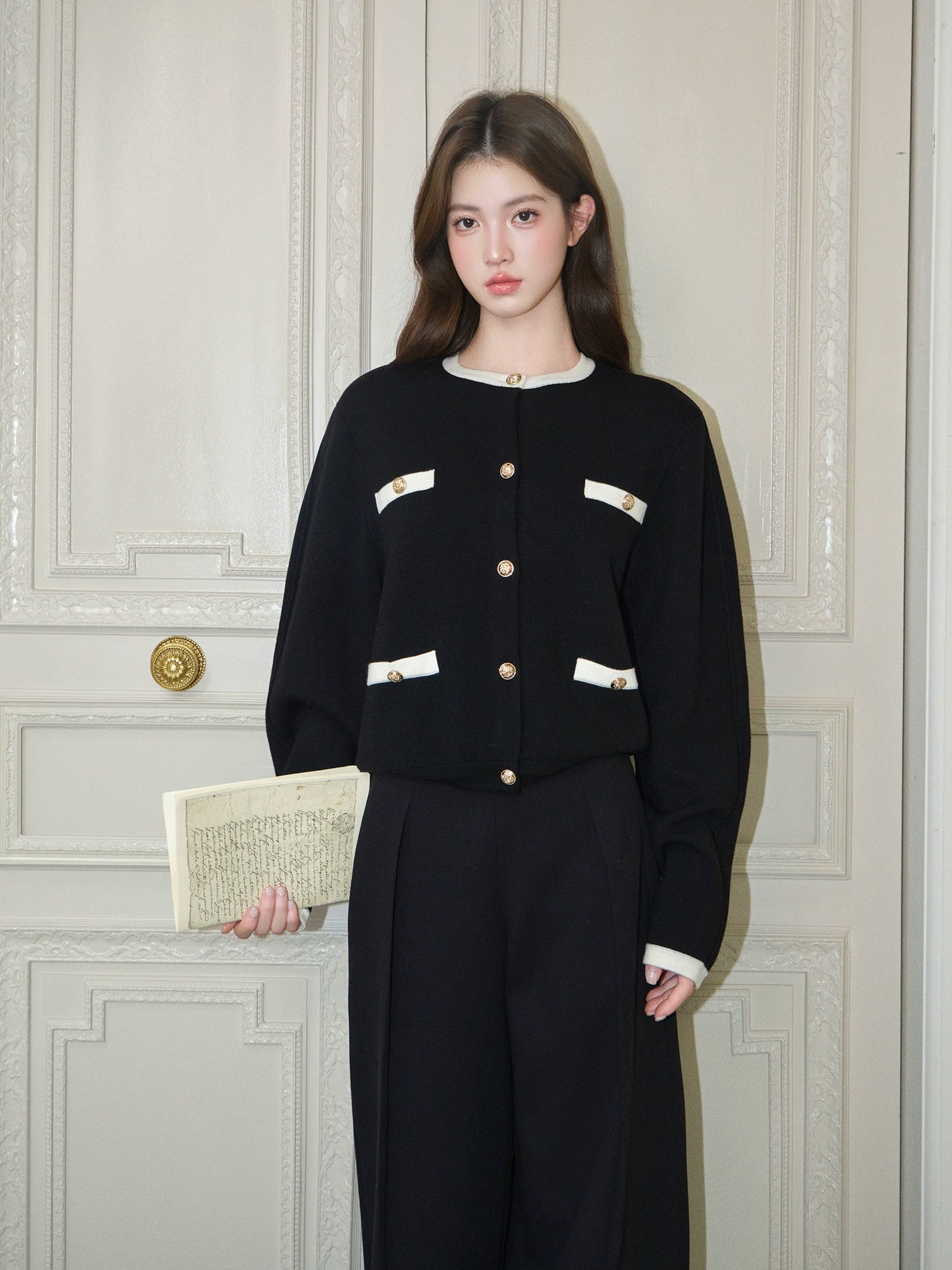 上質なウール素材を使用した、バイカラーデザインのカーディガン。