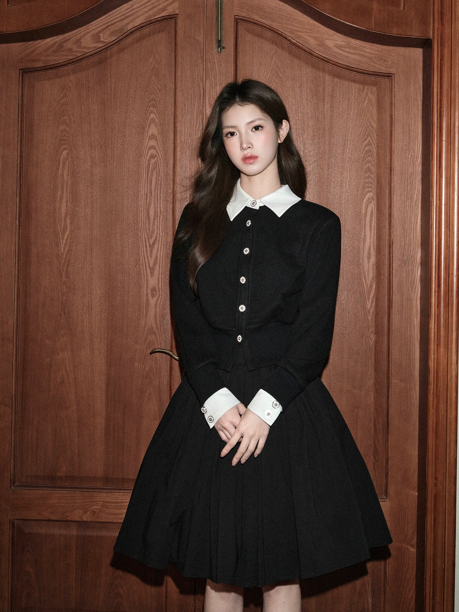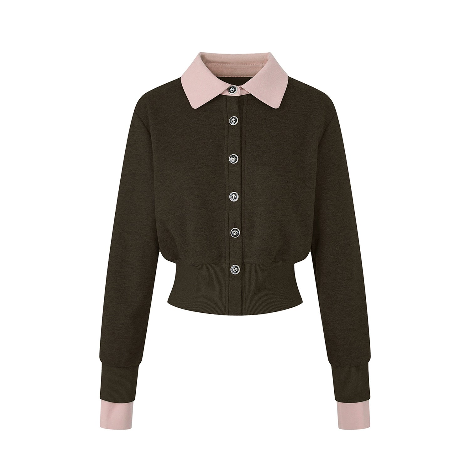 立体的なラペルデザインが印象的な、上品なニットカーディガン。